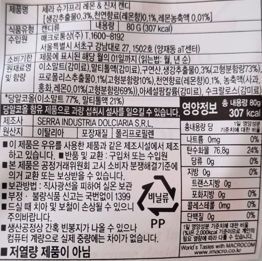 세라는 이탈리아에서 오랜 시간 사랑받아온 캔디 브랜드로, 1947년부터 자연스러운 과일과 허브의 맛을 담은 캔디를 만들어온 곳으로 생강과 과일의 조화를 자연스럽게 담아 자극적이지 않고 은은하게 기분 좋아지는 깔끔한 맛이 특징입니다.